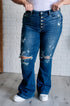 Judy Blue - Gabriella Mid Rise Distressed Button Fly Flare Jeans