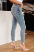 The Sherry Mid Rise Release Waistband Detail Skinny from Judy Blue are perfect for everyday style. Featuring a medium wash, flattering mid rise fit, and raw edge release waistband detail that all come together for a look that is casual and modern. The skinny fit and raw hemline complete the look.