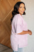 Stay cool, calm, and collected in our Unbothered Mineral Wash Top! This funky French terry and waffle knit combo features drop shoulders, raw edge details, a stepped hem, and side slits for a laid-back effortless look. Also available in grey.